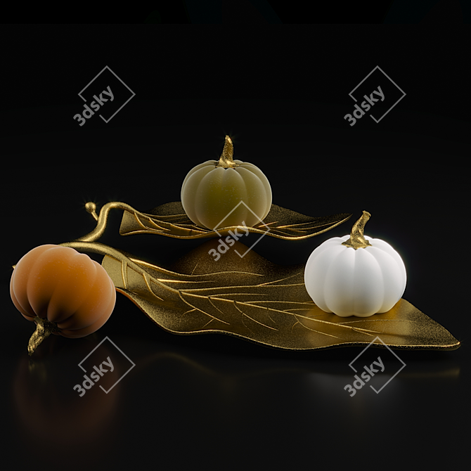 The *Gold Leaf Tray & Velvet Pumpkins* set features the elegant Cassia Gold decorative tray and plush velvet mini pumpkins with golden stems. The tray, designed in the shape of gilded leaves, serves as a stunning decorative piece, perfect for showcasing items or serving as a table centerpiece.
