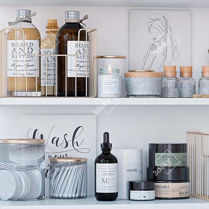 The Luxury Bathroom Décor Set is carefully curated to exude elegance and sophistication. Featuring decorative fillings, cosmetics, and baskets on the shelves, this set brings a luxurious touch to your bathroom. With our 3D model, you can visualize how these elements perfectly complement your existing or future bathroom design.