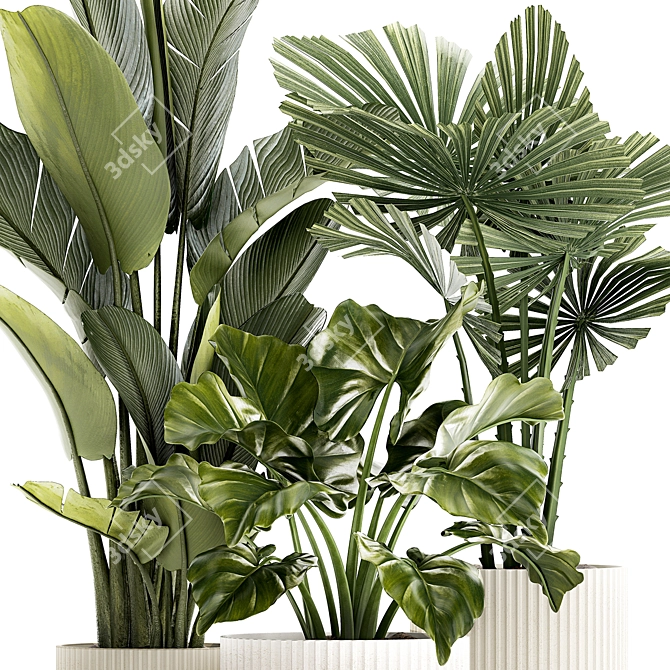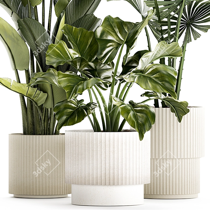 Indulge in the beauty of our Exotic Plant Collection **3d model**, featuring a variety of small plants in modern white pots. Enhance your living spaces with the elegance of Strelitzia and the Licuala fan palm. This set, labeled 1436, offers a touch of sophistication that will elevate any room or outdoor area.
