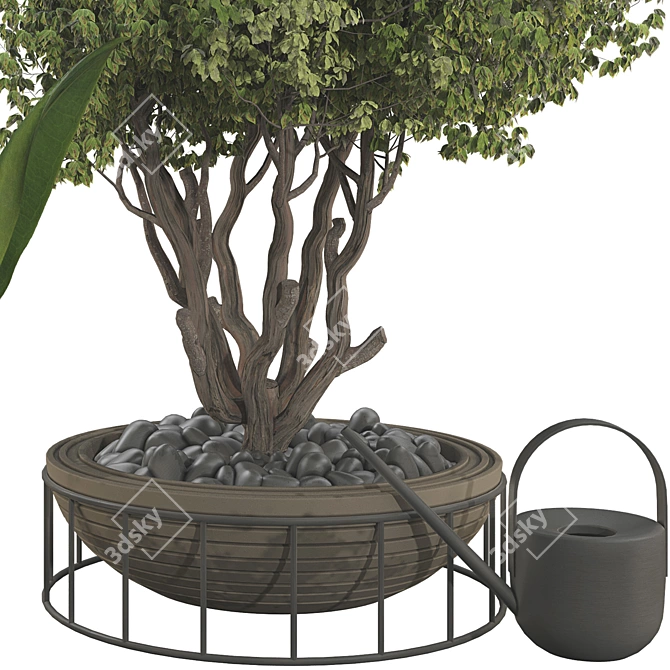 Introducing the Plant Collection Set 56, a captivating **3D model** that brings the beauty of nature into your **3D interior decor**. This set includes a decorative potted tree displayed elegantly on a metal shelf, along with a watering cane, bonsai olive tree, fern, dry branches, and banana leaf plants. Elevate your **3D room design** with this exquisite collection.