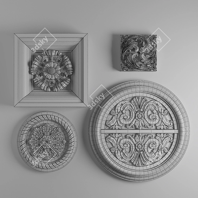 If you are looking to elevate your **3D interior decor** or **3D room design**, this Decor Set from Restoration Hardware is the perfect choice. This **3D model download** offers exquisite details such as a Framed Medallion, Hand-carved Acanthus Roundel, Architectural Plaster Fragments, and a Botanical Floral Medallion – all meticulously crafted to enhance your **3D design** projects.