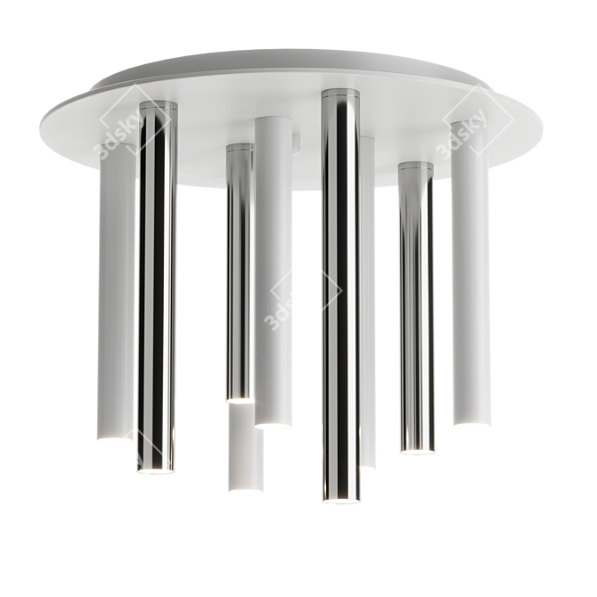 Immerse yourself in the brilliance of a round LED ceiling light 3d model, showcasing 9 metal lamps with a sophisticated chrome and crisp white matte coating. Elevate your 3d room design with this exquisite fixture that adds a touch of modernity to any interior setting.