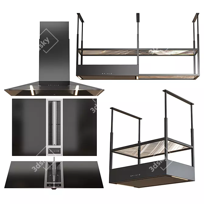 The Sirius appliance set2 offers a collection of premium 3D models for your design projects. This set includes top-quality models such as Symphony island hoods in various sizes, Middle hob with downdraft feature, and the stylish Jeeg Wall hood in Black & White finish.