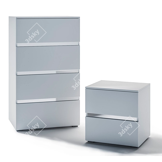 Snow White Nightstand & Two Dressers - 3D Model for Interior Design